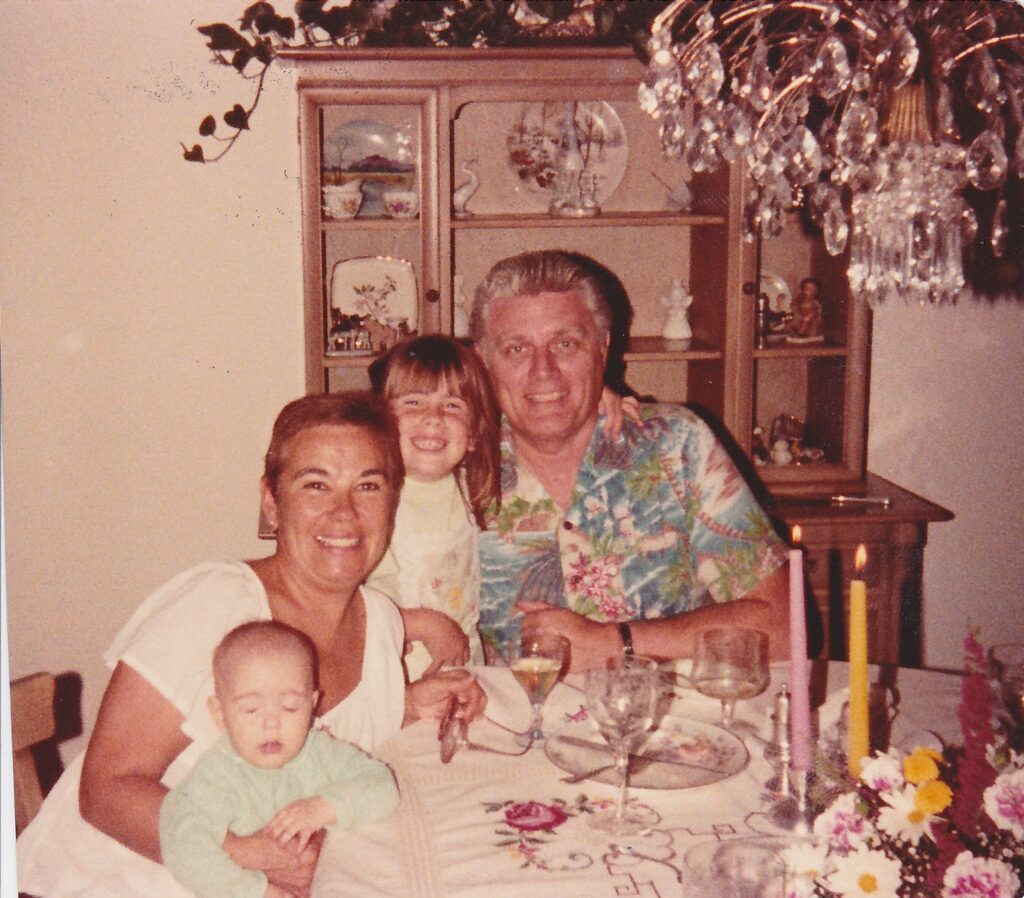 Below is an 1882 Easter photo taken in the dining area of Mom and Dad’s place at 4520 Commonwealth Circle in Culver City.  The girl between them is my daughter Christina (she now has two grown kids of her own), and the little one below I am told is Amy (brother Pat’s daughter).