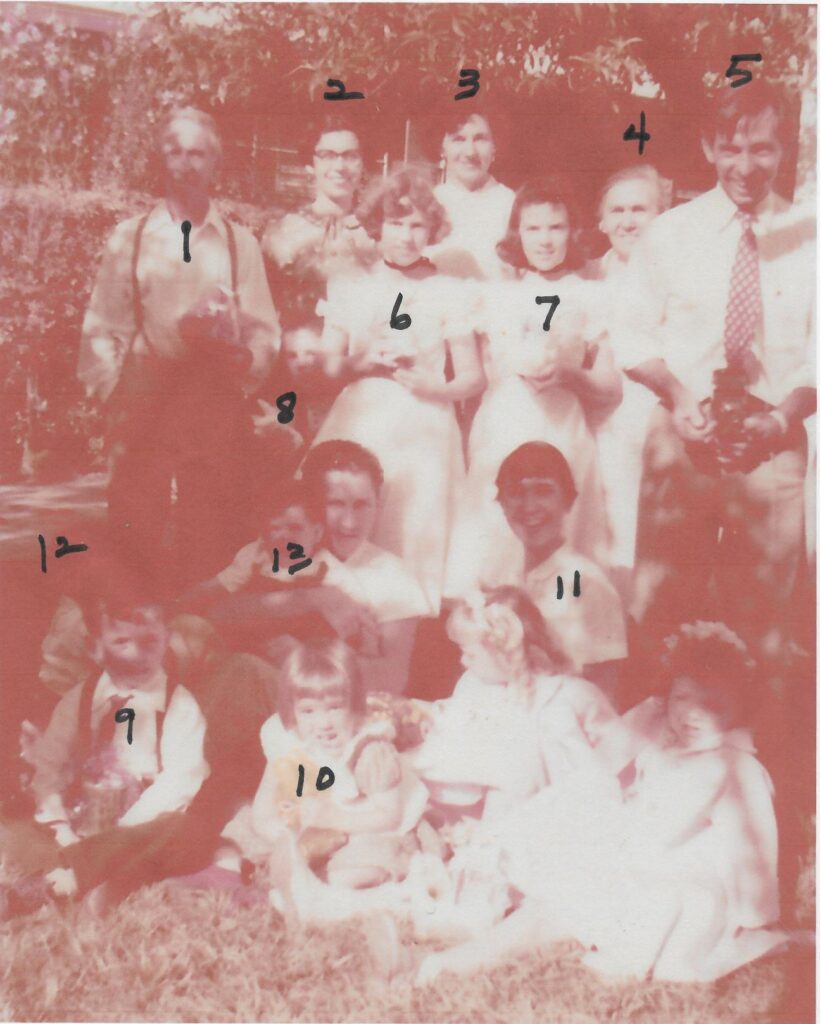 In the Easter, 1955 photo I would assume the two girls next to Art are Bonnie & Sandy, Art’s step-daughters. His first wife, Mary should be there somewhere.